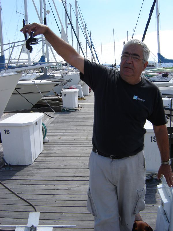 We also changed sails, fixed a few sail-related problems, added reef rigging components, stowed parts, drilled holes, attached electronics, etc. Just getting the dinghy and outboard onboard was a challenge! Good thing we installed extra halyards.